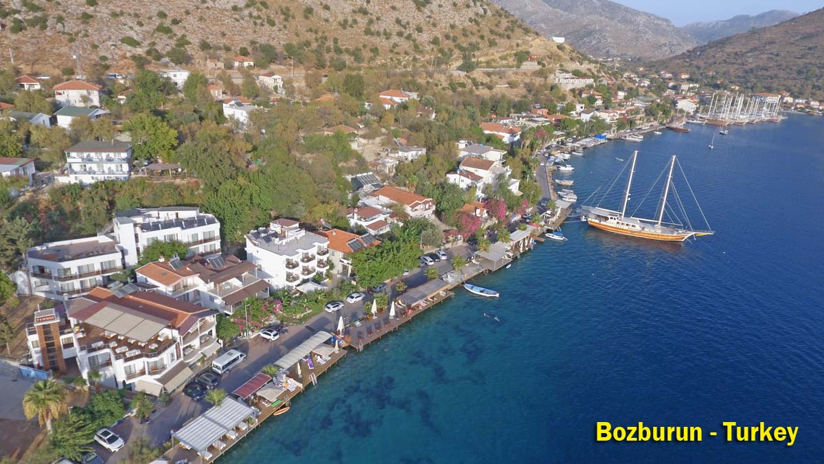 You can travel by local bus by doing a 2-leg bus journey: Dalaman airport – Marmaris – Bozburun. The total cost is around 10 Euro and it takes about 3 hours to get there this way. Turkish buses are comfortable (with Air Con) and easy to use.