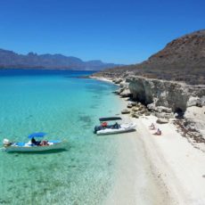 Today we are heading south to the magical Danzante island. Renowned French explorer Jacques Cousteau calls the Danzante Bay and this area “the Aquarium of the World” because there are over 5,000 species of sea creatures. Our first swim is on the southern part of the island where we stop at the La Ventana window point. Our swim is anything but boring as we look up the high cliffs of Danzante island. We finish our morning swim at the El Submarine little rock where we are picked up by our escort boats. Lunch at Honeymoon cove.
