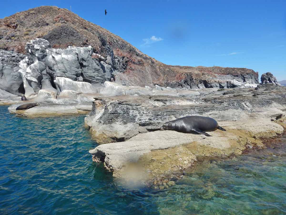 Today we are heading north to visit Coronado Island. There is no day here without sea lions, dolphins and several other marine species. We enjoy our morning swim in the eastern part of the island where we finish the swim next to the sea lion colony. Lunch break in the Candeleros bay (Ensenada Blanca). After lunch, we do a short walk up the hill to soak up the amazing view from this former volcanic island. There are usually hundreds of pelican birds around us which make our walk even more adventurous.