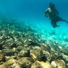 We are heading back to the southern part of Carmen island to explore further stunning spots. The first swim takes us from Punta Colorada to La Pared point. We swim alongside the shallow and rocky seabed in the warm turquoise water. We see rich marine life all around us including manta rays, stingrays, starfish, and hundreds of other fish species.